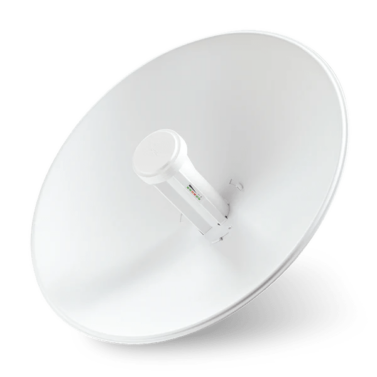Puente punto a punto (PtP) de 5 GHz de alto rendimiento con reflector de plato integrado. Proporciona un rendimiento de datos de hasta 450+ Mbps.