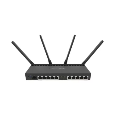 RB4011iGS+5HacQ2HnD-IN (modelo WiFi) es una unidad de cuatro cadenas de doble banda con una velocidad de datos admitida de hasta 1733 Mbps en 5 GHz. Para dispositivos heredados, la unidad también tiene una tarjeta inalámbrica de cadena dual de 2 GHz instalada en la ranura miniPCI-e.