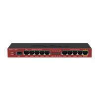Caja metálica de escritorio, 5xEthernet, 5xGigabit Ethernet, caja SFP, salida PoE en el puerto 10, CPU de 600 MHz, 64 MB de RAM, RouterOS L4