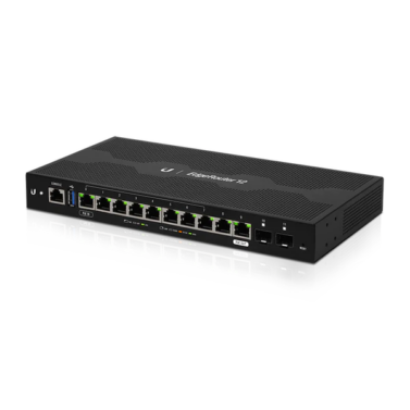 El EdgeRouter 12 es un enrutador Gigabit de alto rendimiento con flexibilidad PoE. Con un mayor rendimiento en comparación con la generación anterior de enrutadores, EdgeRouter 12 ofrece hasta 3,4 millones de pps para paquetes de 64 bytes. Diez puertos Gigabit Ethernet ofrecen conectividad de cobre, mientras que dos puertos SFP ofrecen conectividad de fibra. El EdgeRouter 12 es compatible con la conmutación de capa 2 y la configuración escalable mediante EdgeOS o UISP .