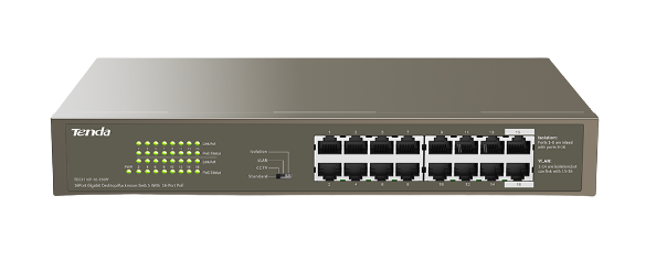 VLAN: Los puertos 1 a 14 de TEG1116P-16-150W están aislados entre sí, pero pueden comunicarse con los puertos 15 y 16 (puertos de enlace ascendente) respectivamente. Interruptor DIP sólido para aislar los puertos para evitar tormentas de transmisión y defender la suplantación de DHCP.