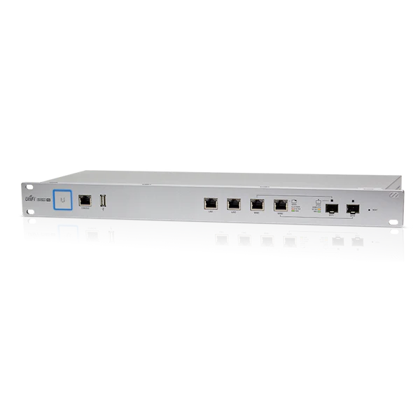 Cree su red segura y flexible con Ubiquiti UniFi® Security Gateway Pro, parte del sistema UniFi Enterprise. El Unifi Security Gateway Pro es un enrutador Gigabit de alto rendimiento que ofrece seguridad sólida y funciones de enrutamiento avanzadas. Dos puertos combinados SFP/RJ45 brindan opciones de conectividad de fibra con velocidades de hasta 1 Gbps. El reenvío avanzado de paquetes acelerado por hardware ofrece un rendimiento de más de 1 millón de paquetes por segundo. El Unifi Security Gateway Pro ofrece cuatro puertos Ethernet independientes con una velocidad de línea completa de 4 Gbps.
